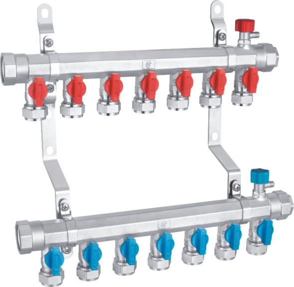 材质:精锻黄铜适用介质:水、非腐蚀性液体、饱和蒸汽最大工作压力:1.6MPa介质温度:-20℃≤t≤110℃主管接口:1"螺纹支管接口:¢16/¢20主管通径:28mm支管间距:50mm